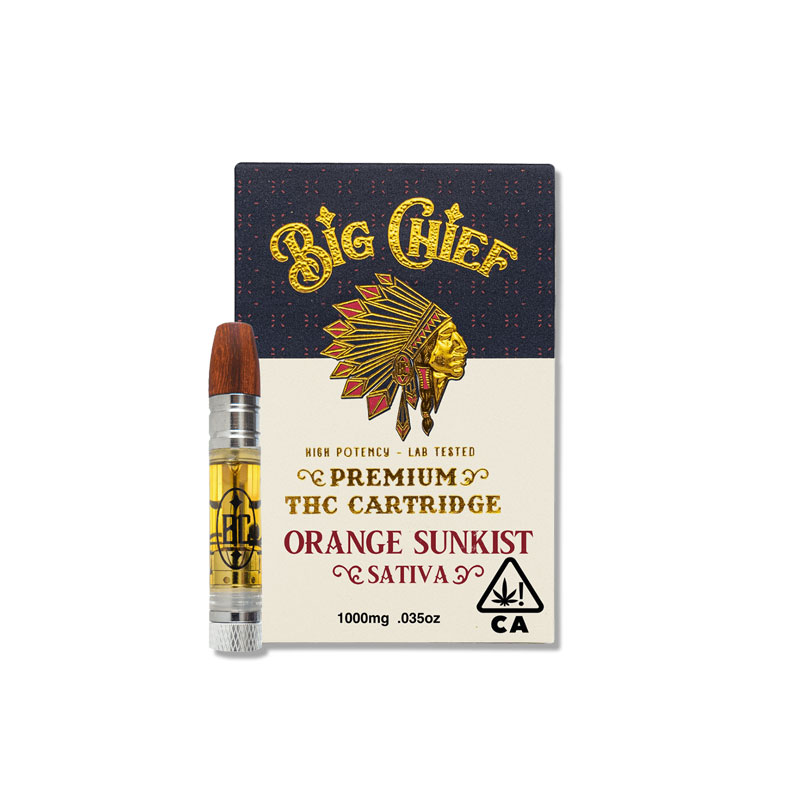 **Product Name**: Big Chief 1g Cart - Orange Sunkist **Description**: The Big Chief 1g Cart in Orange Sunkist flavor is a sun-drenched escape encapsulated in a convenient vape cartridge. This premium 1-gram cart is filled with high-quality cannabis oil that captures the essence of the Orange Sunkist strain, renowned for its vibrant citrus aroma and sweet, tangy taste that's reminiscent of the beloved summer fruit. Perfect for vape enthusiasts seeking a burst of energy and a mood uplift, the Orange Sunkist cart offers a refreshing and euphoric experience. Big Chief's commitment to purity means that each cartridge is free from fillers and additives, ensuring a clean and potent draw every time. The sativa-dominant effects make it an excellent choice for daytime use, whether you're looking to enhance creativity, socialize, or simply enjoy a moment of blissful tranquility. **Strain Type**: Sativa-Dominant **Product Type**: Vape Cartridge