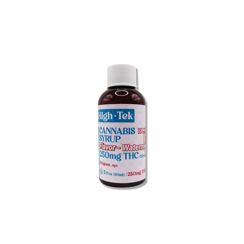 **Description**: Quench your thirst for relief and flavor with High Tek Syrup 250mg in the juicy Watermelon flavor. This THC-infused syrup offers an innovative way to consume cannabis, blending the sweet and refreshing taste of ripe watermelon with the potent effects of premium THC. Each bottle contains 250mg of THC, allowing for precise dosing and the flexibility to control your experience, whether you're looking for a mild euphoria or more intense relaxation.